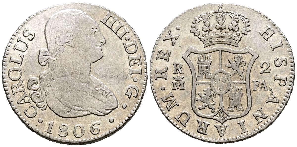 CARLOS IV (1788-1808). 2 Reales (Ar. 5,91g/26mm). 1806. Madrid FA. (Cal-2019-615). MBC+. Buen ejemplar