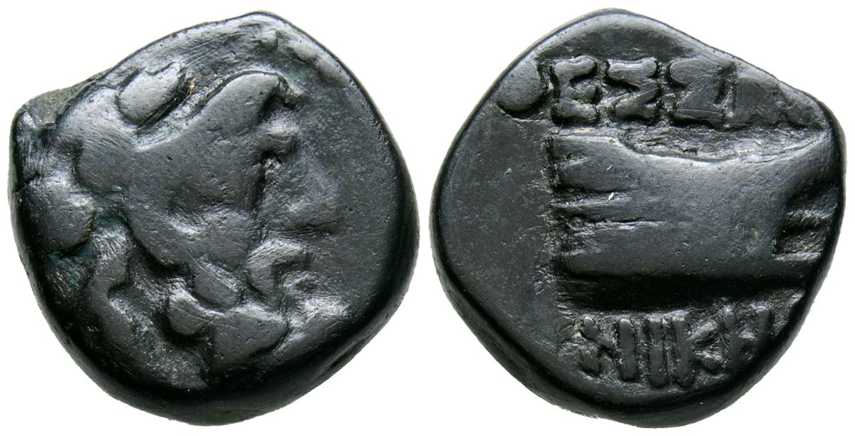 TESALIA, Liga Tesálica. Ae18. (Ae. 7,34g/18mm). 196-146 a.C. (SNG Copenhagen 161). Anv: Cabeza laureada barbada a derecha, detrás tridente. Rev: Proa a derecha, alrededor leyenda griega. BC+.