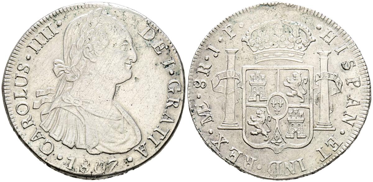 CARLOS IV (1788-1808). 8 Reales. (Ar. 26,46g/39mm). 1807. Lima JP. (Cal-2019-927). MBC+. Rayitas.