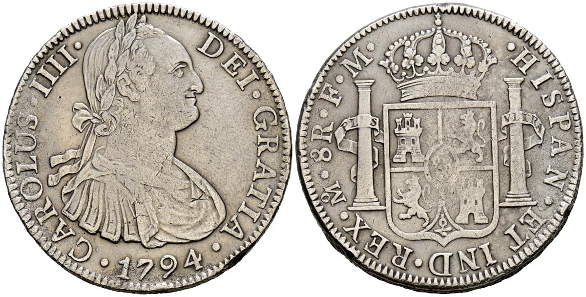 CARLOS IV (1788-1808). 8 Reales. (Ar. 26,81g/39mm). 1794. Mexico FM. (Cal-2019-956). MBC+. Ligeros restos de oxidación. Vano en reverso.