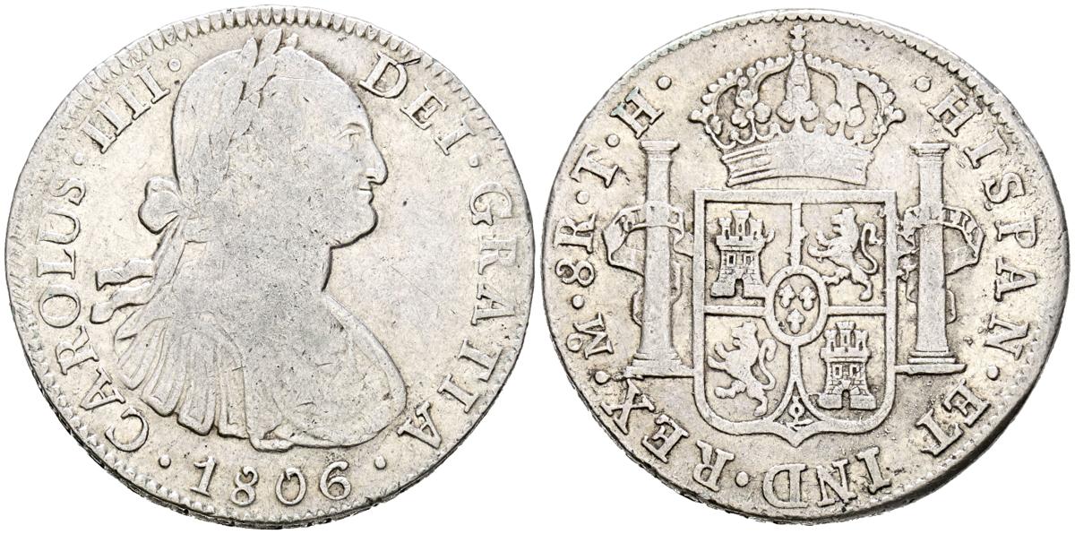 CARLOS IV (1788-1808). 8 Reales. (Ar. 26,94g/40mm). 1806. México TH. (Cal-2019-984). MBC.