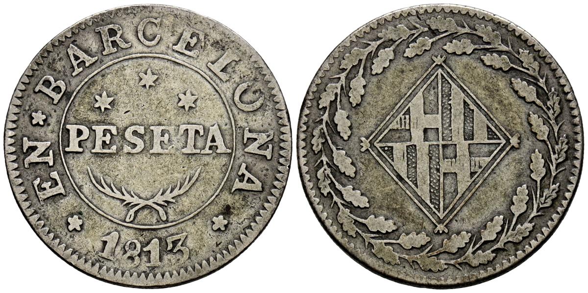 JOSÉ NAPOLEÓN (1808-1813). 1 Peseta. (Ar. 5,36g/27mm). 1813. Barcelona. (Cal-2019-37). MBC.
