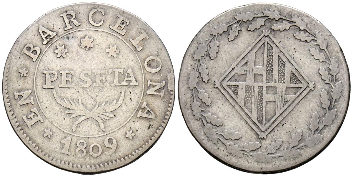JOSÉ NAPOLEÓN (1808-1814). 1 Peseta. (Ar. 5,53g/26mm). 1809. Barcelona. (Cal-2019-32). MBC-.