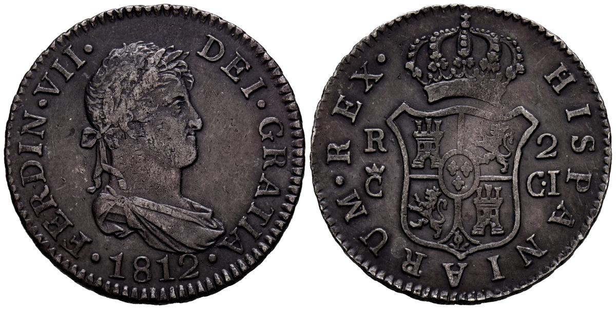FERNANDO VII (1808-1833). 2 Reales. (Ar. 5,84g/27mm). 1812. Cádiz CI. (Cal-2019-727). MBC.