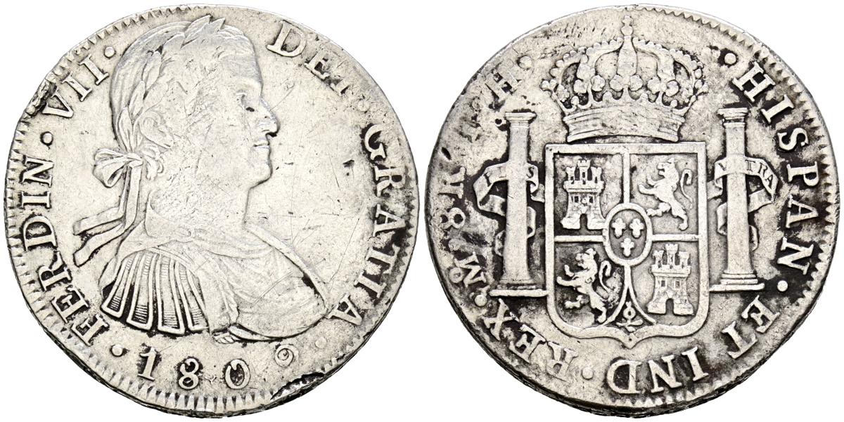 FERNANDO VII (1808-1833). 8 Reales. (Ar. 26,71g/39mm). 1809. México TH. (Cal-2019-1308). MBC-.