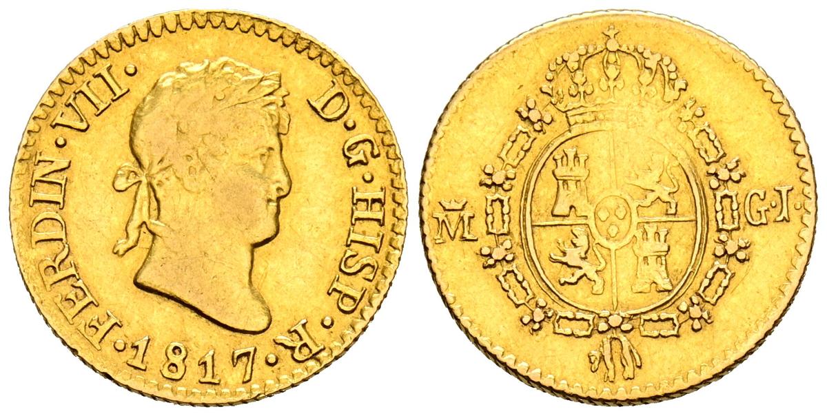 FERNANDO VII (1808-1833). 1/2 Escudo. (Au. 1,66g/14mm). 1817. Madrid GJ. (Cal-2019-1486). MBC.