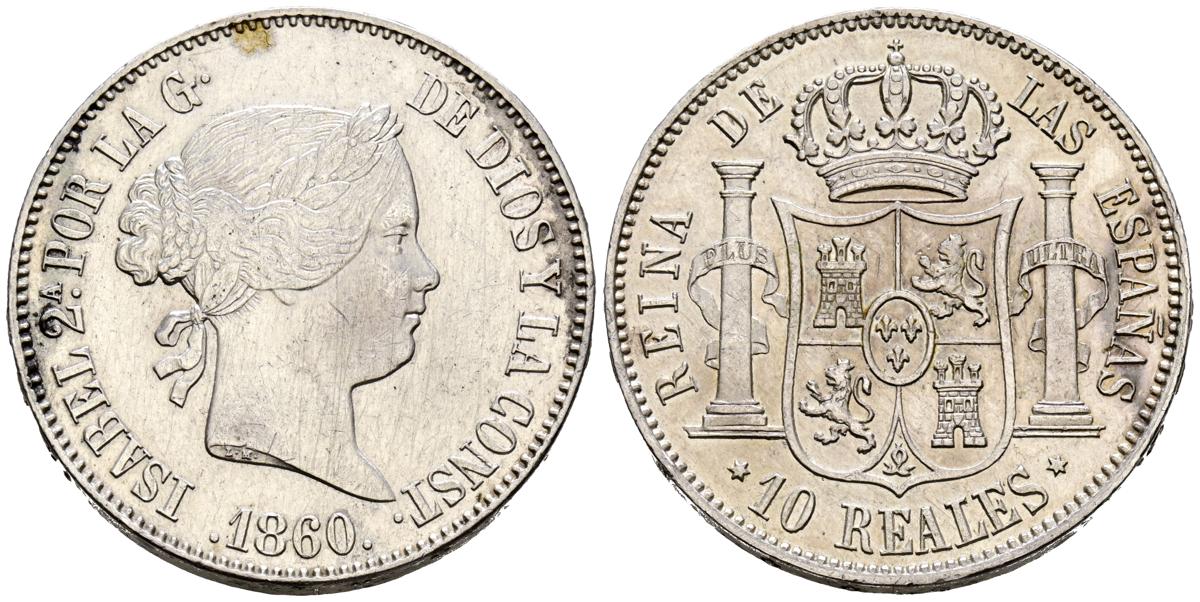 ISABEL II (1833-1868). 10 Reales. (Ar. 12,95g/24mm). 1860. Madrid. (Cal-2019-437). MBC+. Rayitas en anverso.