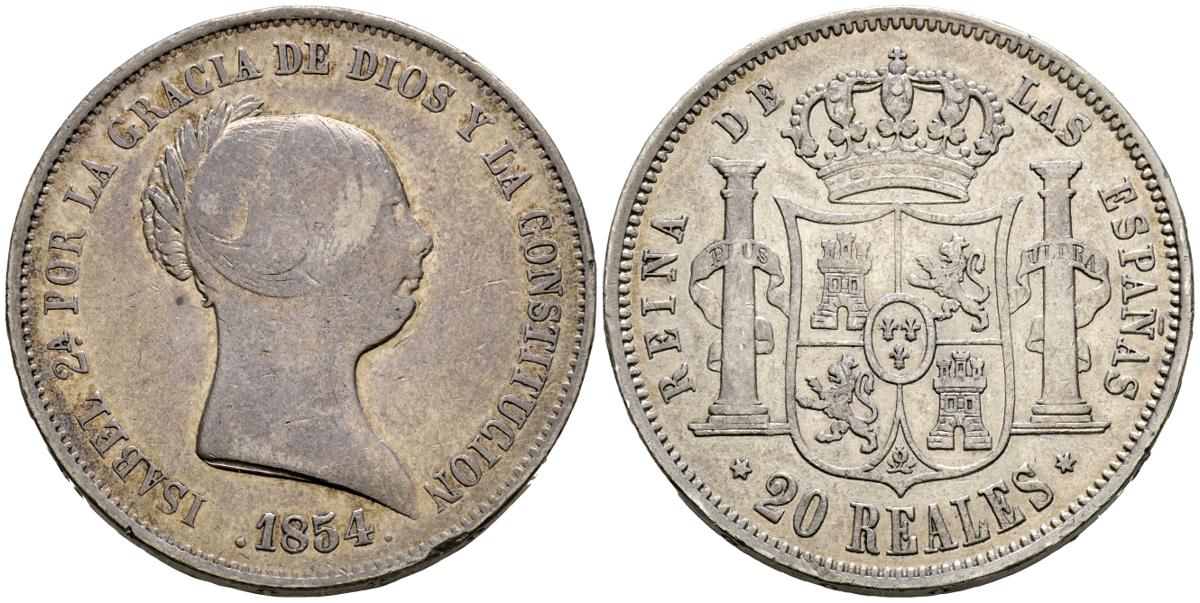 ISABEL II (1833-1868). 20 Reales. (Ar. 25,75g/37mm). 1854. Madrid. (Cal-2019-596). MBC.