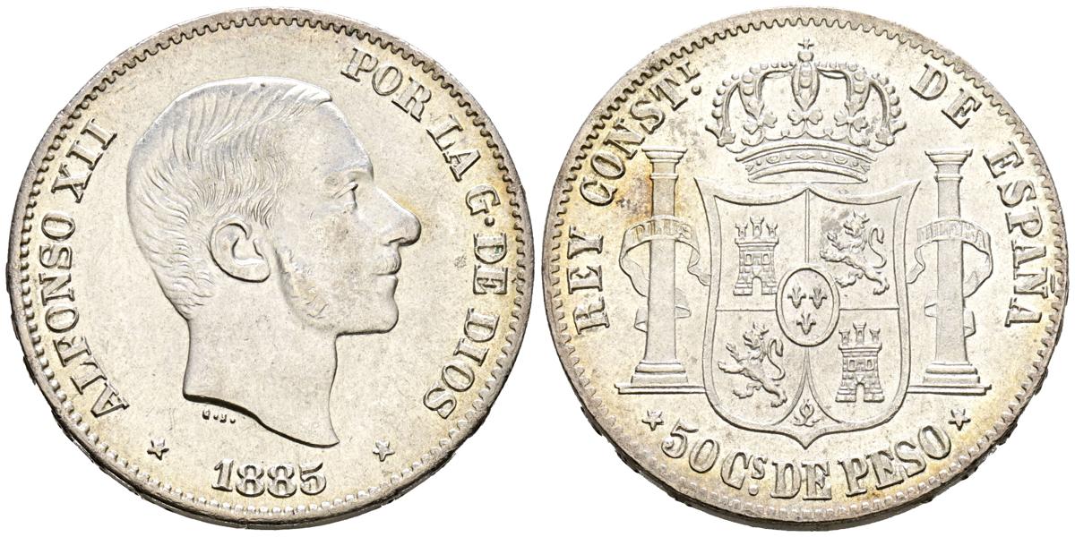 ALFONSO XII (1874-1885). 50 Centavos de Peso. (Ar. 12,84g/30mm). 1885. Manila. (Cal-2019-124). EBC-/EBC. Limpiada.