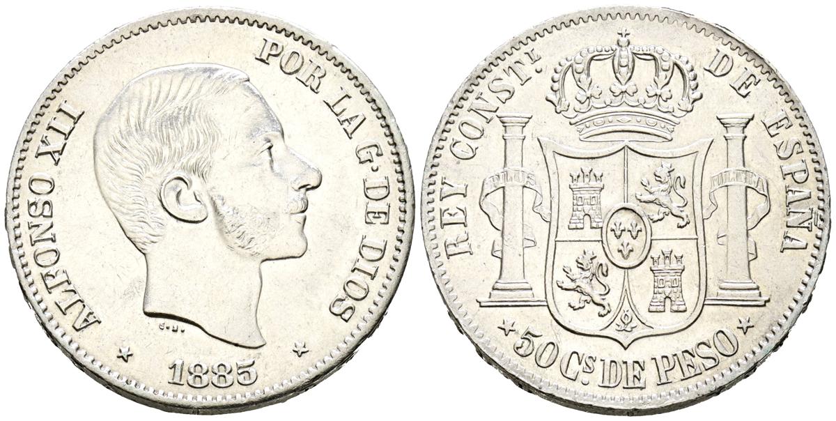 ALFONSO XII (1874-1885). 50 Centavos. (Ar. 12,93g/30mm). 1885. Manila. (Cal-2019-124). EBC-. Limpiada.