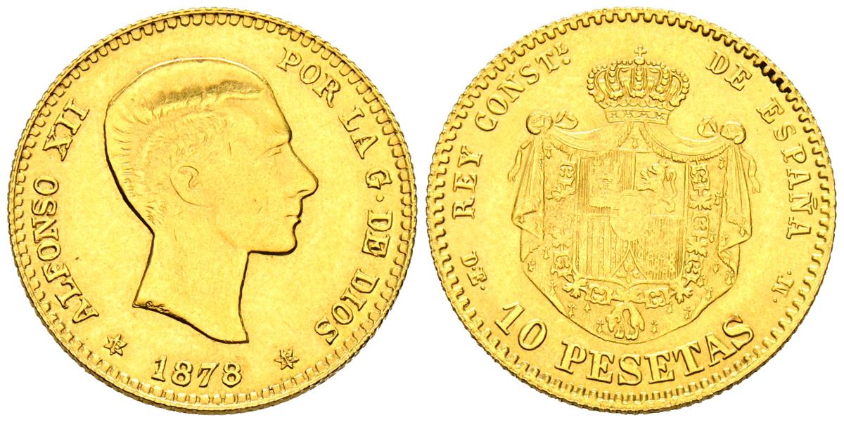 ALFONSO XII (1874-1885). 10 Pesetas. (Au. 3,19g /19mm). 1878. *18-78 . Madrid EMM. Réplica de joyería en oro de 0,750 milésimas. MBC+.