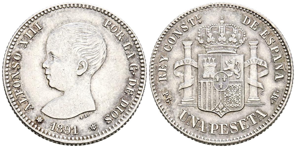 ALFONSO XIII (1885-1931). 1 Peseta. (Ar. 5,11g/23mm). 1891 *18-91. Madrid PGM. (Cal-2019-53). MBC+. Estrellas perfectamente visibles.