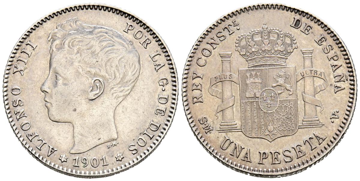 ALFONSO XIII (1885-1931). 1 Peseta. (Ar. 4,95g/23mm). 1901 *19-01. Madrid SMV. (Cal-2019-60). EBC. Rayitas.