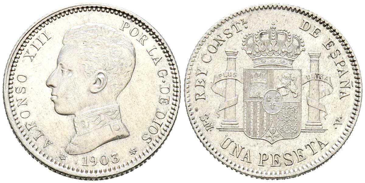 ALFONSO XIII (1885-1931). 1 Peseta. (Ar. 4,93g/23mm). 1903 *19-03. Madrid SMV. (Cal-2019-67). EBC+.
