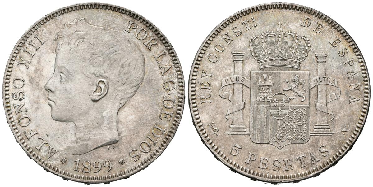 ALFONSO XIII (1885-1931). 5 Pesetas. (Ar. 25,00g/37mm). 1899 *18-99. Madrid SGV. (Cal-2019-110). EBC. Rayitas de limpieza.