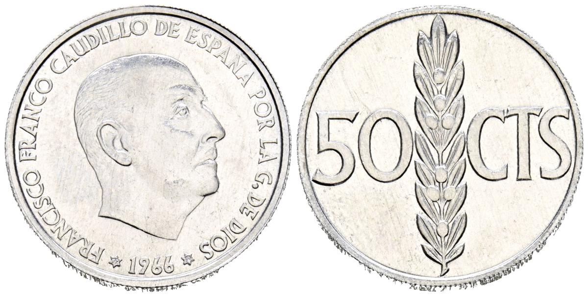 ESTADO ESPAÑOL (1936-1975). 50 Céntimos. (Al. 0,99g/20mm). 1966 *19-70. Madrid. (Cal-2019-34). EBC+.