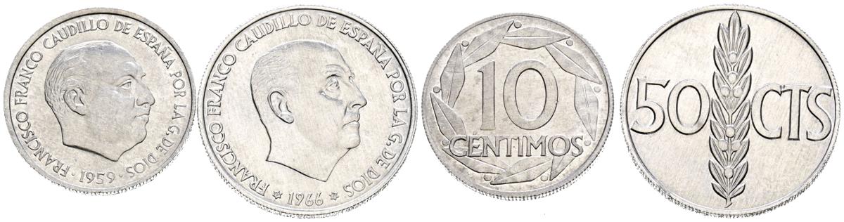 Conjunto de dos piezas de 10 Céntimos de 1966*70 y 5 Céntimos de 1959. A EXAMINAR.
