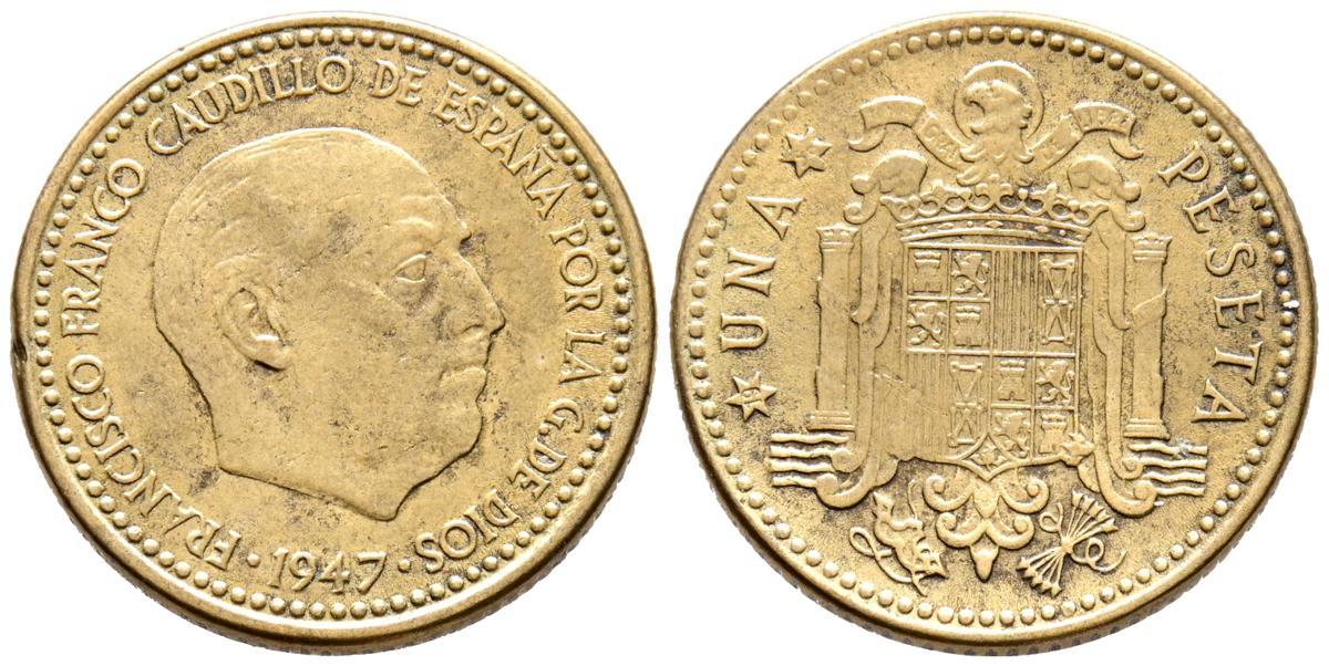 ESTADO ESPAÑOL (1936-1975). 1 Peseta. (AlCu. 3,65g/21mm). 1947 *19-56. Madrid. (Cal-2019-55). MBC+.