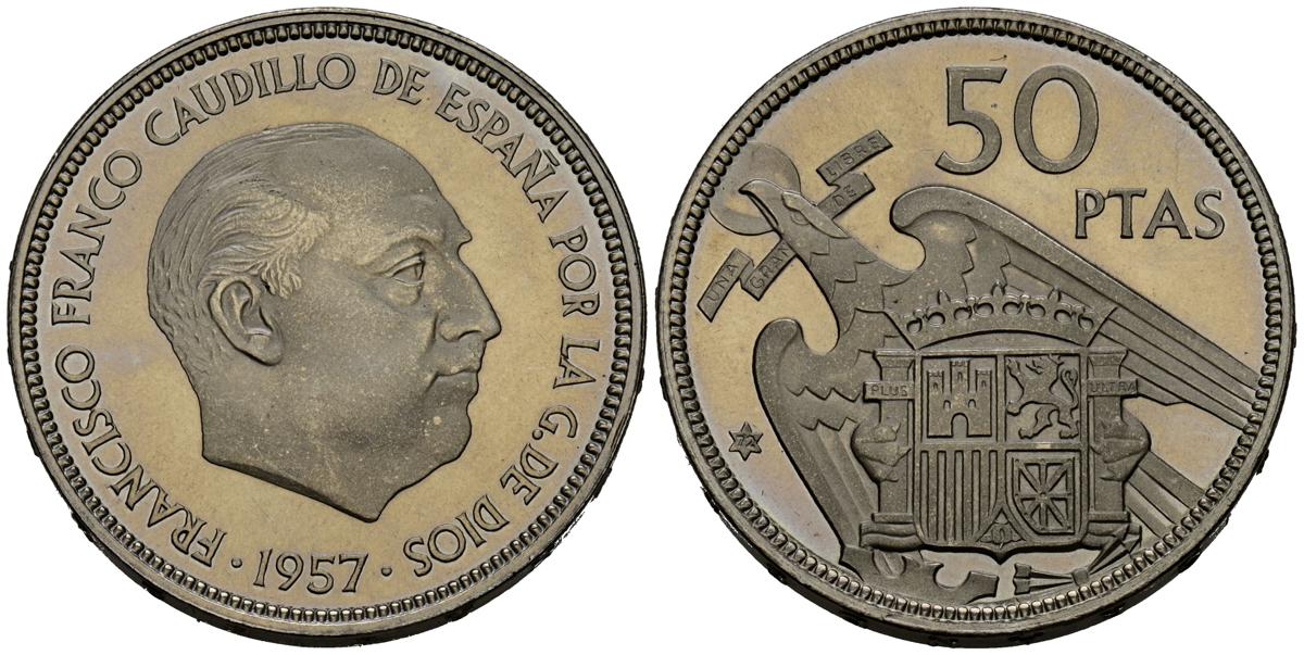 ESTADO ESPAÑOL (1936-1975). 50 pesetas. (NI. 12.39g/30mm). 1957 *72. Madrid. (Cal-2019-141). PROOF.