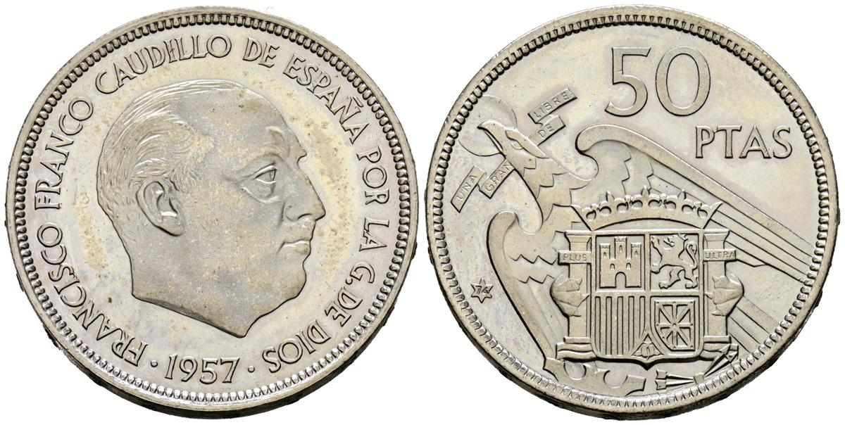 ESTADO ESPAÑOL (1936-1975). 50 Pesetas. (Ni. 12,20g/30mm). 1957 *74. Madrid. (Cal-2019- 143). PROOF.