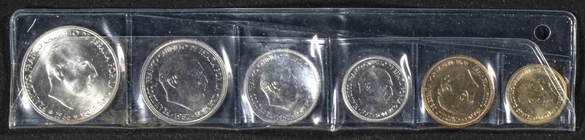 ESTADO ESPAÑOL (1936-1975). Tira de la F.N.M.T. con los valores 1, 2'50, 5, 25, 50 y 100 Pesetas. 1970. PROOF.