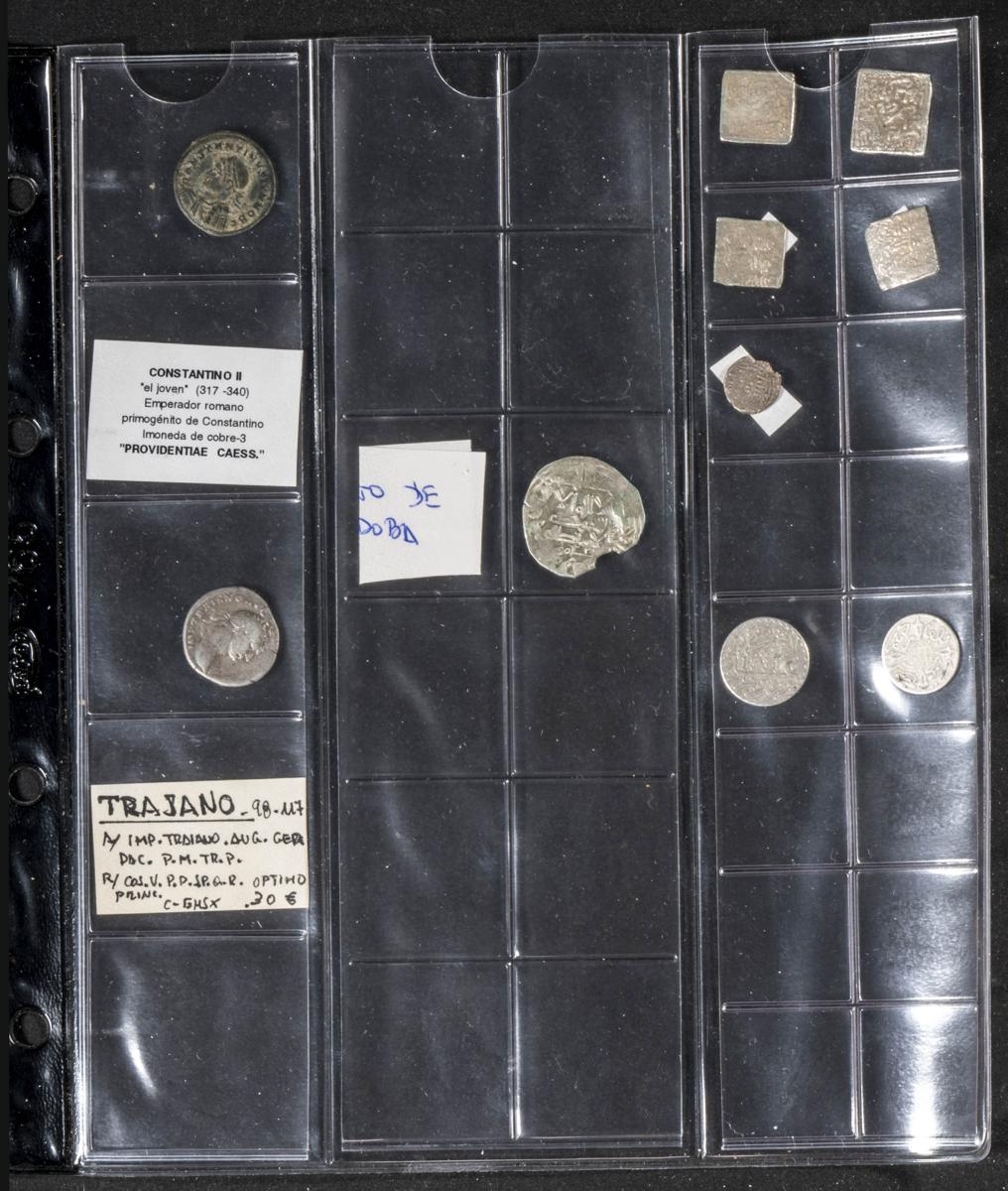 Pequeño e interesante resto de colección formado por decenas de monedas tanto españolas como extranjeras destacando algunos ejemplares árabes, romanos, piezas en estuche y un buen número de ejemplares en plata moderna. Diferentes estados de conservación. A EXAMINAR.