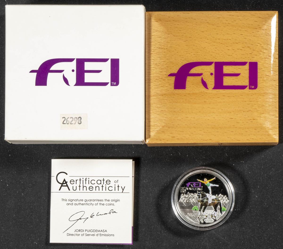 ANDORRA. 5 Diner. (Ar. 20,00g/39mm). 2013. "Federación Ecuestre Internacional". PROOF. Incluye estuche y certificado oficial.