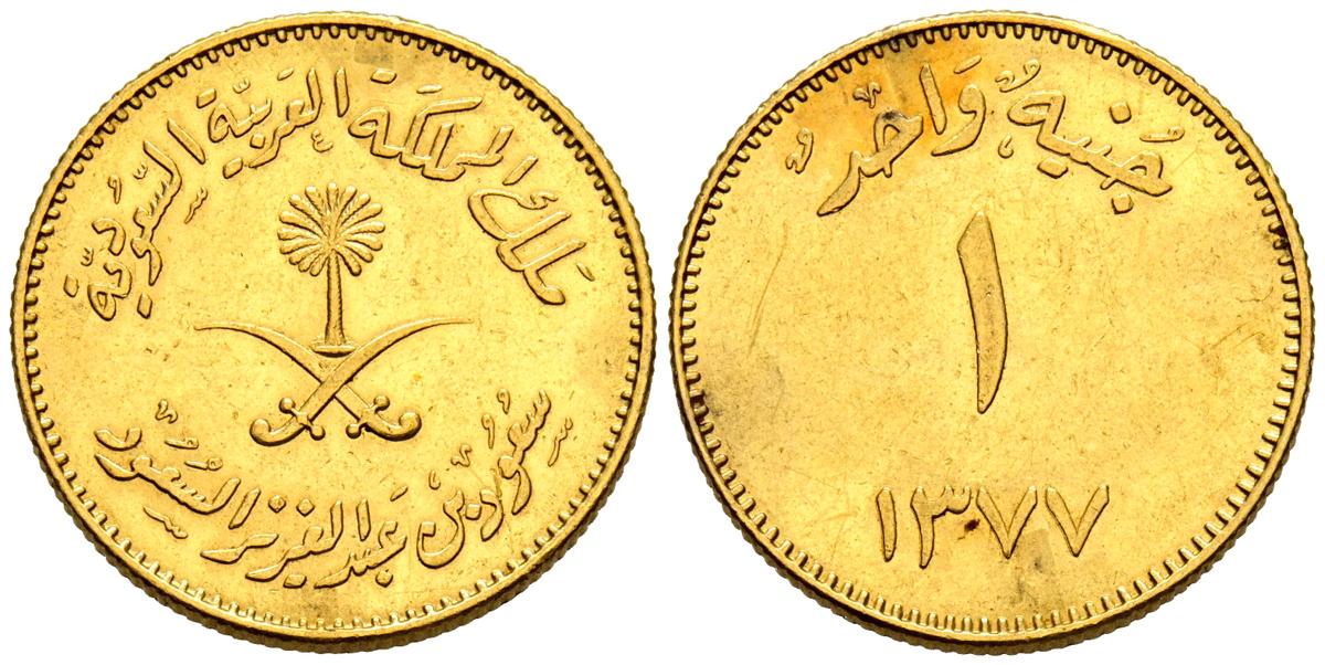 ARABIA SAUDITA. Libra. (Au. 8,01g/22mm). 1377H (11957). (Km#43). EBC.