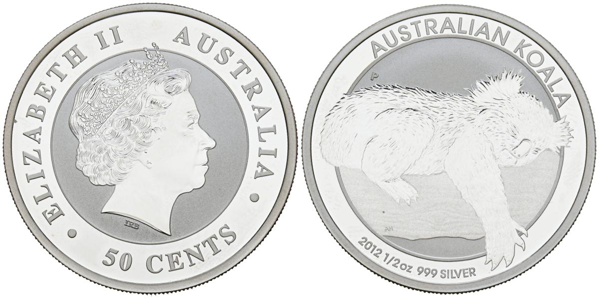 AUSTRALIA. 50 Cents (Ar. 15,83g/36mm). 2012. Koala durmiendo en árbol. (Km#1798). PROOF.