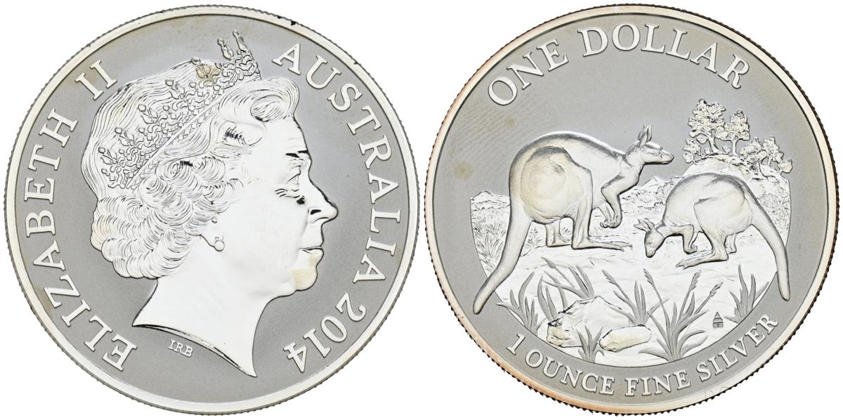 AUSTRALIA. 1 Dollar (Ar. 31,84g/40mm). 2014. Pareja de canguros. PROOF.