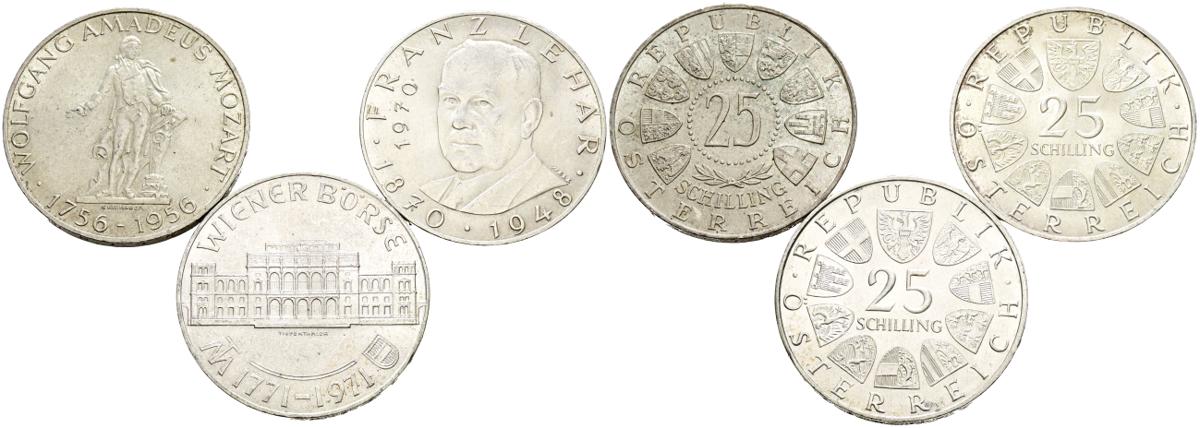 AUSTRIA. Bonito conjunto formado por 3 piezas en plata de 25 Schilling acuñadas en 1956, 1970 y 1971. Alto nivel de conservación general. A EXAMINAR.