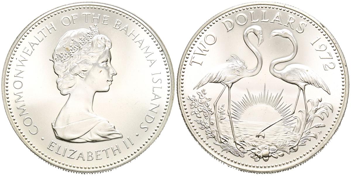 BAHAMAS. 2 Dollars (Ar. 30,80g /40mm). 1972. Isabel II. Franklin Mint. (Km#23). SC. Precioso brillo.
