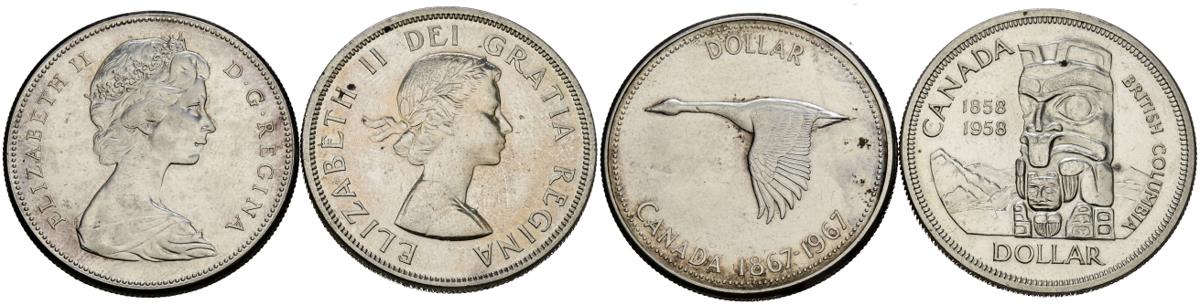 CANADÁ. Pareja de 1 Dollar en plata acuñados en 1958 y 1967 respectivamente. Alto nivel de conservación general. A EXAMINAR.