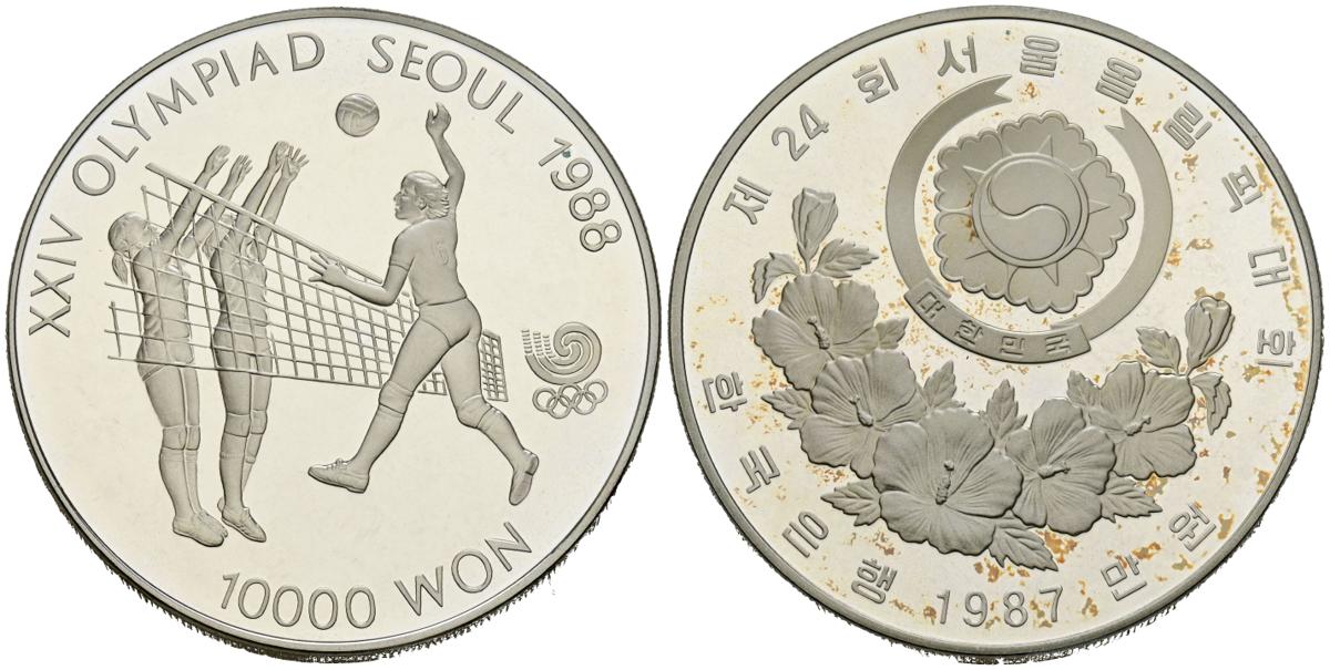 COREA DEL SUR. 10.000 Won. (Ar. 33,49g/40mm). 1987. Olimpiadas de Seúl´88. Voleibol. (Km#63). PROOF.