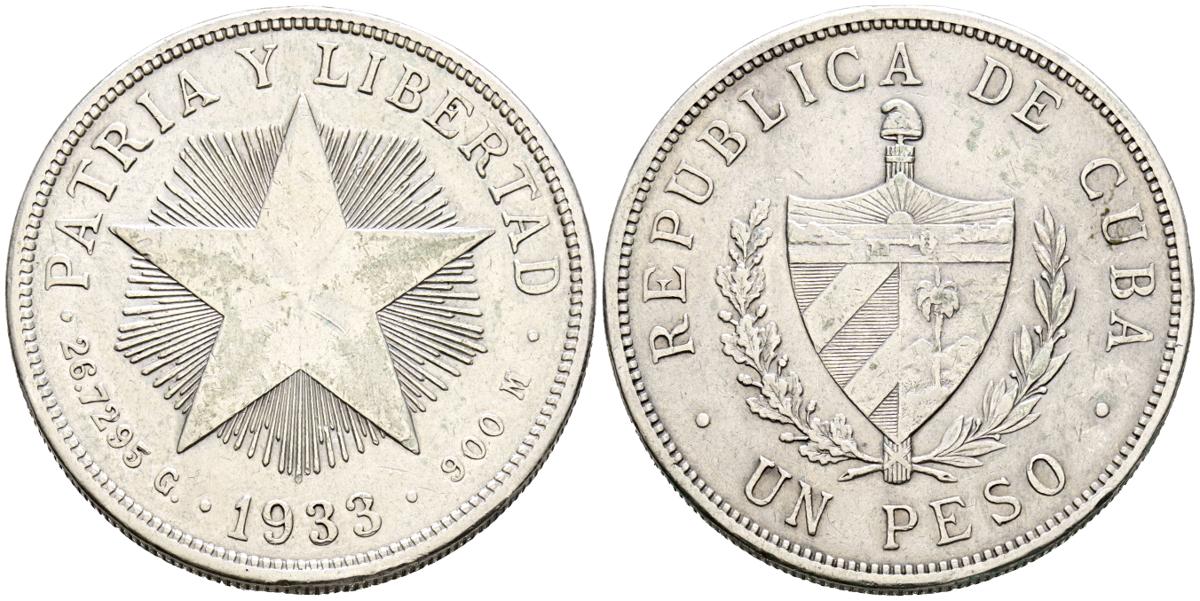 CUBA. 1 Peso. (Ar. 26,69g/38mm). 1933. (Km#15.2). MBC.