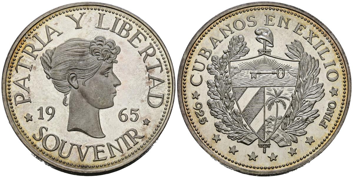 CUBA. 1 Peso Souvenir (Ar. 29,43g/39mm). 1965. Cubanos en exilio. (Km-XM5). Canto liso. PROOF. Ligeras rayitas.