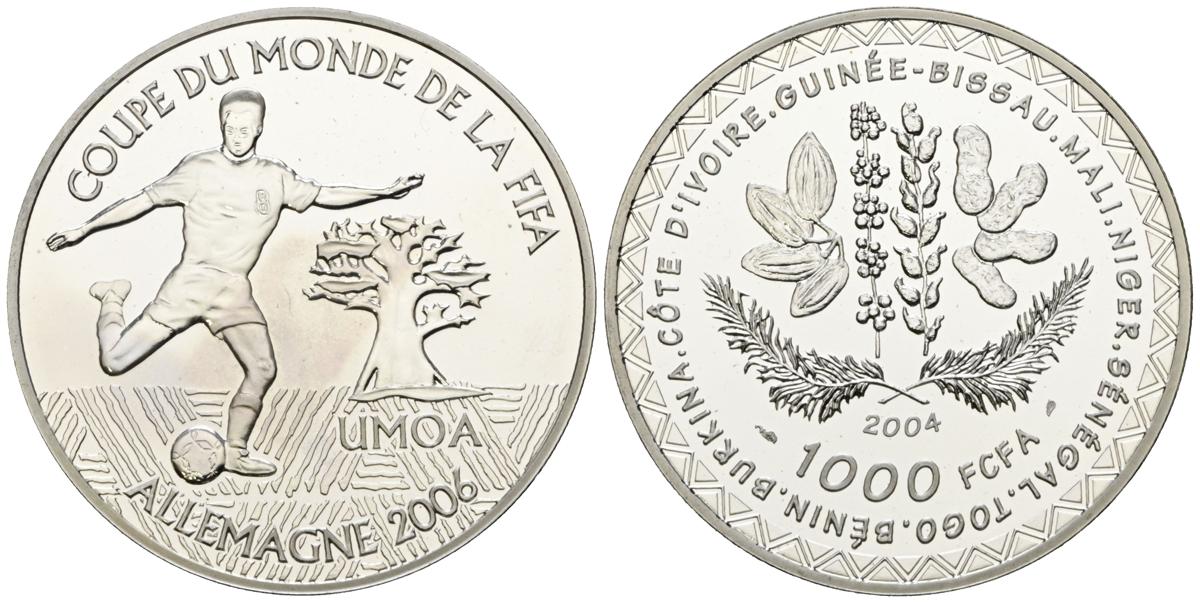 ESTADOS DE AFRICA OCCIDENTAL. 1000 Francs. (Ar. 22,48g/37mm). 2004. Mundial de Fútbol de la FIFA, Alemania 2006. (Km#17). PROOF.
