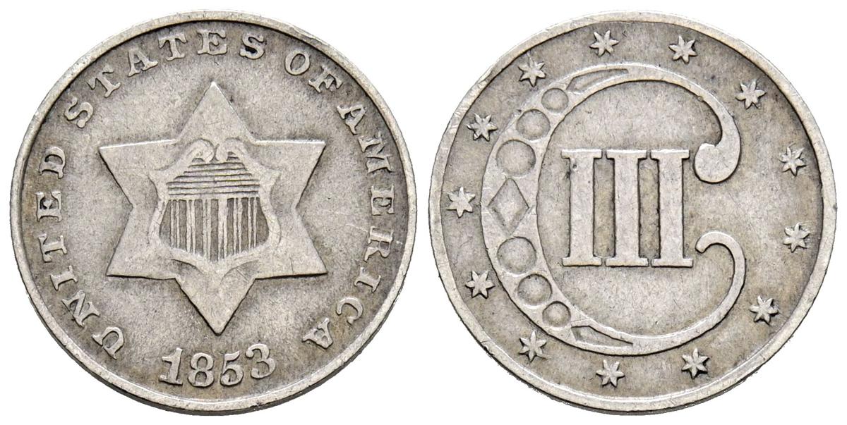 ESTADOS UNIDOS. 3 Cents (Ar. 0,80g/14mm). 1852. Philadelphia. (Km#75). MBC.