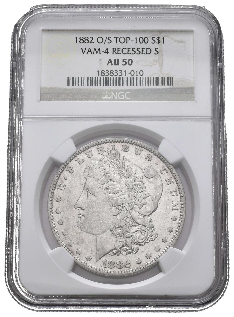 ESTADOS UNIDOS. 1 Dollar (Ar. 26,73g/38mm)*. 1882. Nueva Orleans/San Francisco O/S. (Km#110). AU 50. Top 100. Encapsulado por NGC. *Peso y medida teórico.
