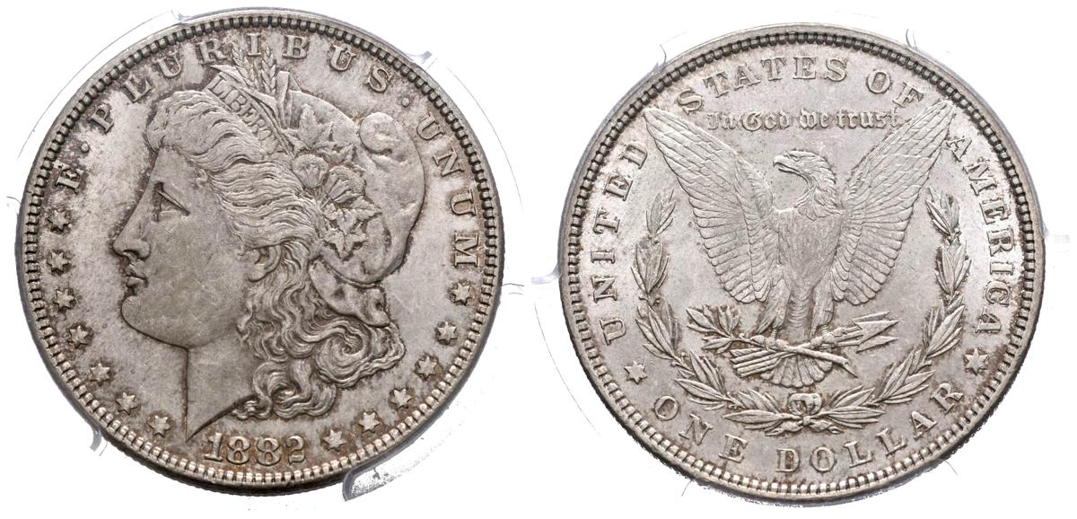 ESTADOS UNIDOS. 1 Dollar (Ar. 26,73g/38mm)*. 1882. Philadelphia. (Km#110). Encapsulado por PCGS MS63. *Peso y medida teórico.