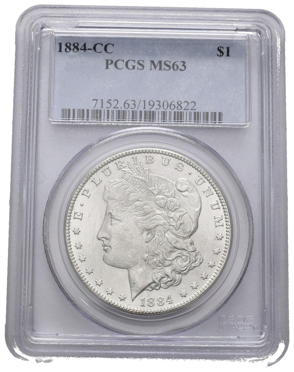ESTADOS UNIDOS. 1 Dollar (Ar. 26,73g/38mm)*. 1884. Carson City CC. (Km#110). MS 63. Encapsulado por PCGS . *Peso y medida teórico.