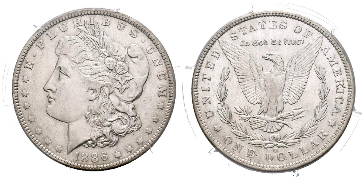 ESTADOS UNIDOS. 1 Dollar (Ar. 26,73g/38mm)*. 1886. Nueva Orleans O. (Km#110). Encapsulado por PCGS AU58. *Peso y medida teórico.