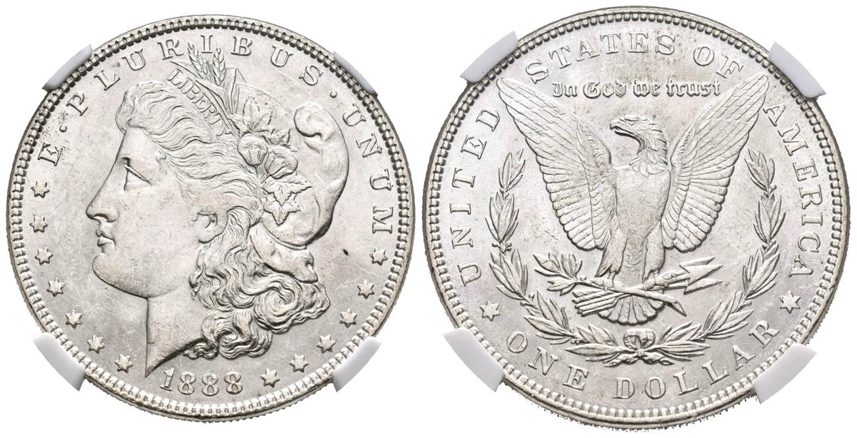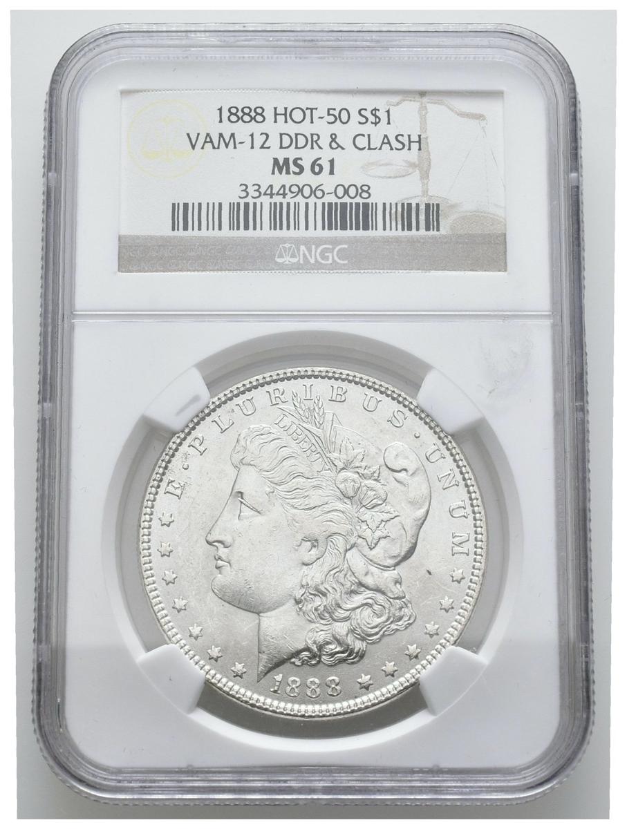 ESTADOS UNIDOS. 1 Dollar (Ar. 26,73g/38mm)*. 1888. Philadelphia. VAM-12 DDR&CLASH. HOT-50 (Km#110). Encapsulado por NGC MS61. *Peso y medida teórico.