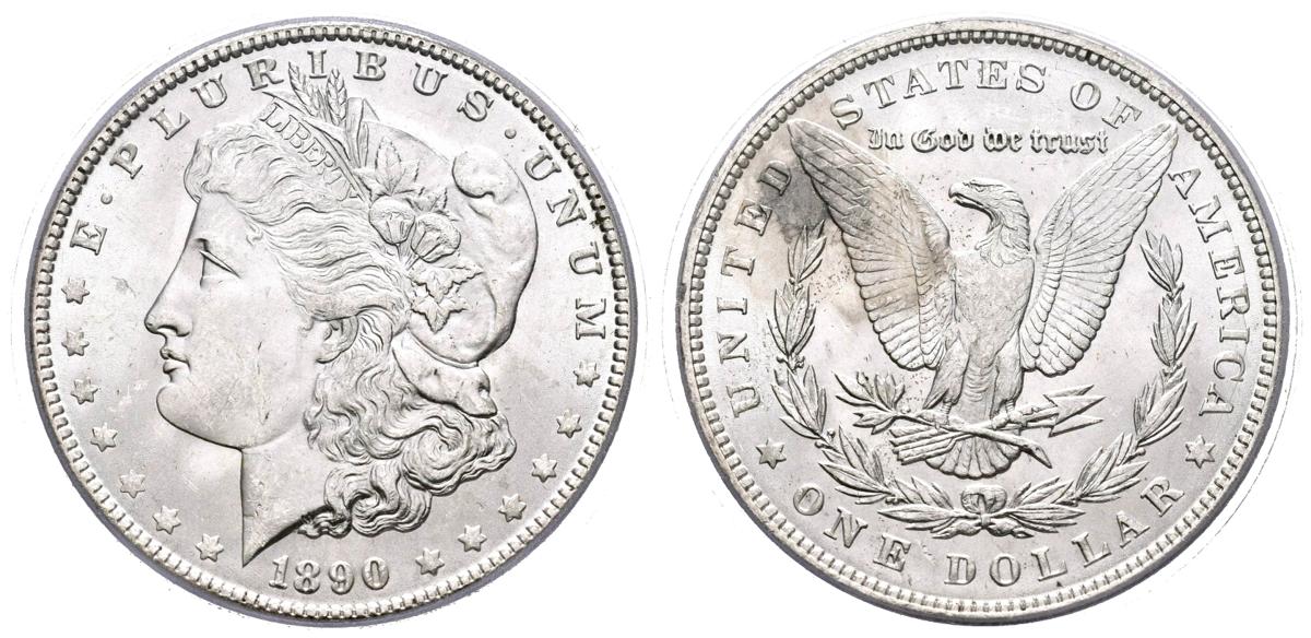 ESTADOS UNIDOS. 1 Dollar (Ar. 26,73g/38mm)*. 1890. Philadelphia. (Km#110). Encapsulado por PCGS MS63. *Peso y medida teórico.