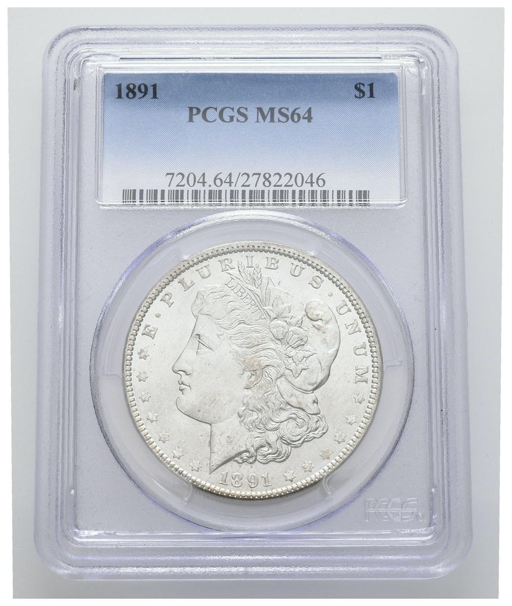 ESTADOS UNIDOS. 1 Dollar (Ar. 26,73g/38mm)*. 1891. Philadelphia. (Km#110). Encapsulado por PCGS MS64. *Peso y medida teórico.