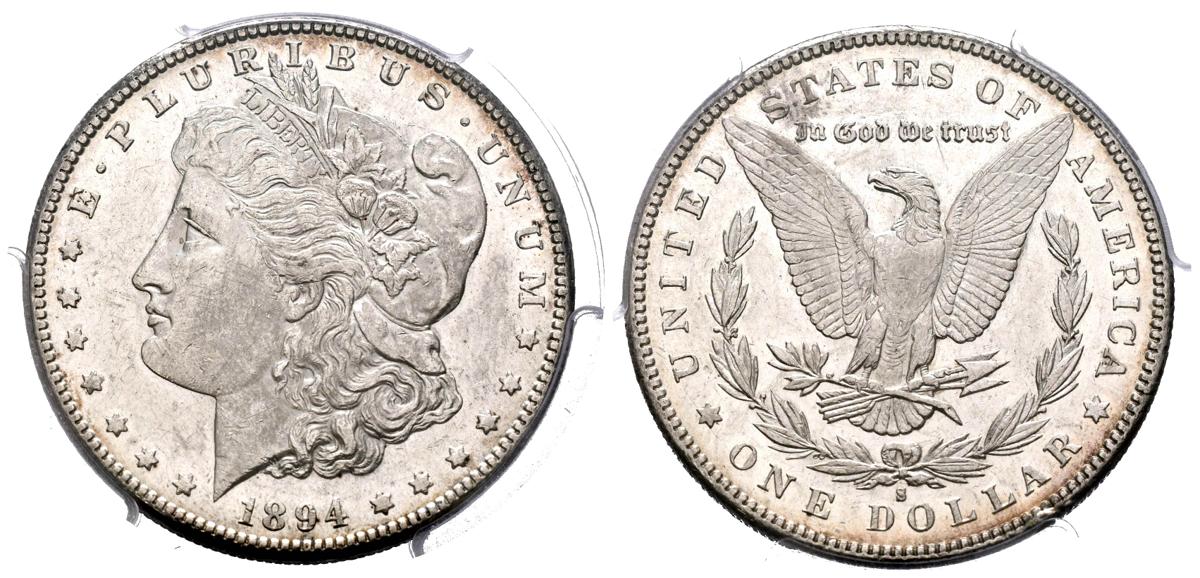 ESTADOS UNIDOS. 1 Dollar (Ar. 26,73g/38mm)*. 1894. San Francisco S. (Km#110). Encapsulado por PCGS AU55. *Peso y medida teórico.