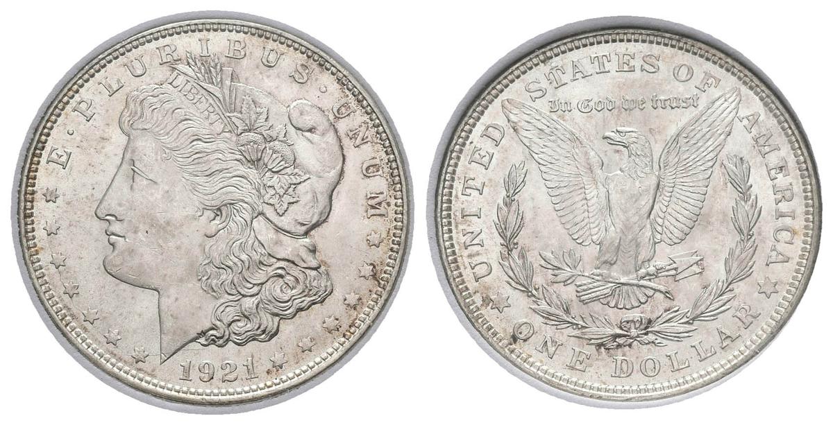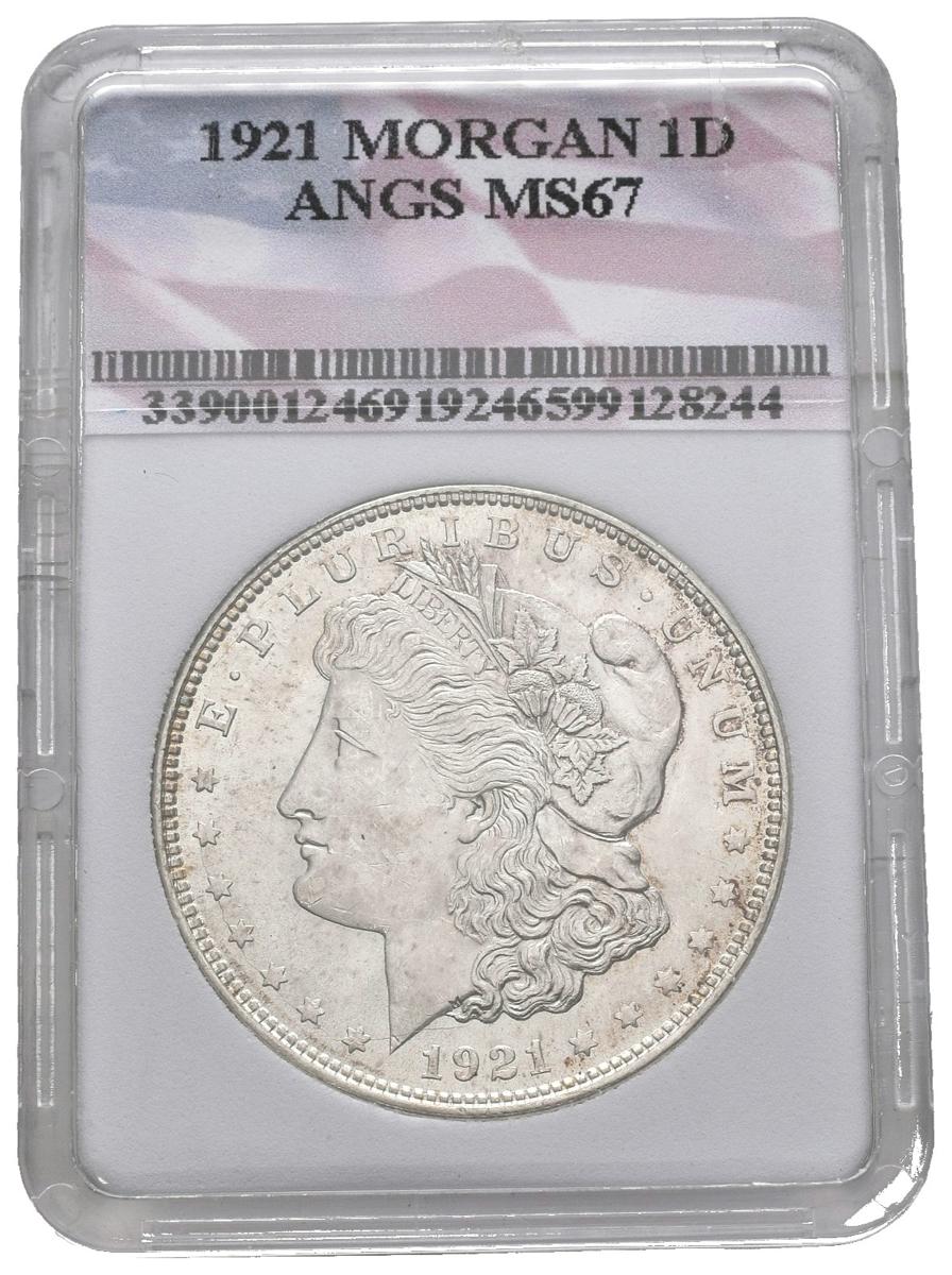 ESTADOS UNIDOS. 1 Dollar (Ar. 26,73g/38mm)*. 1921. Philadelphia. (Km#110). MS 67. Encapsulado por ANGS. *Peso y medida teórico.
