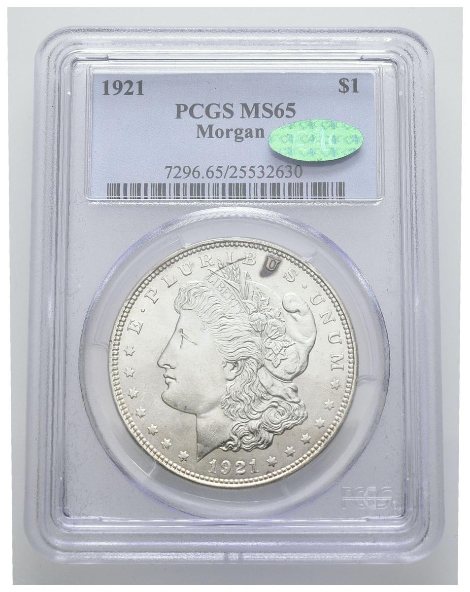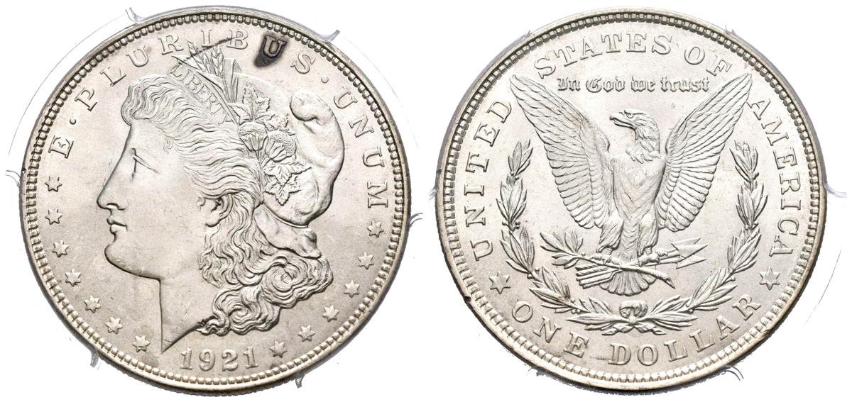 ESTADOS UNIDOS. 1 Dollar (Ar. 26,73g/38mm)*. 1921. Philadelphia. (Km#110). Encapsulado por PCGS MS65. *Peso y medida teórico.