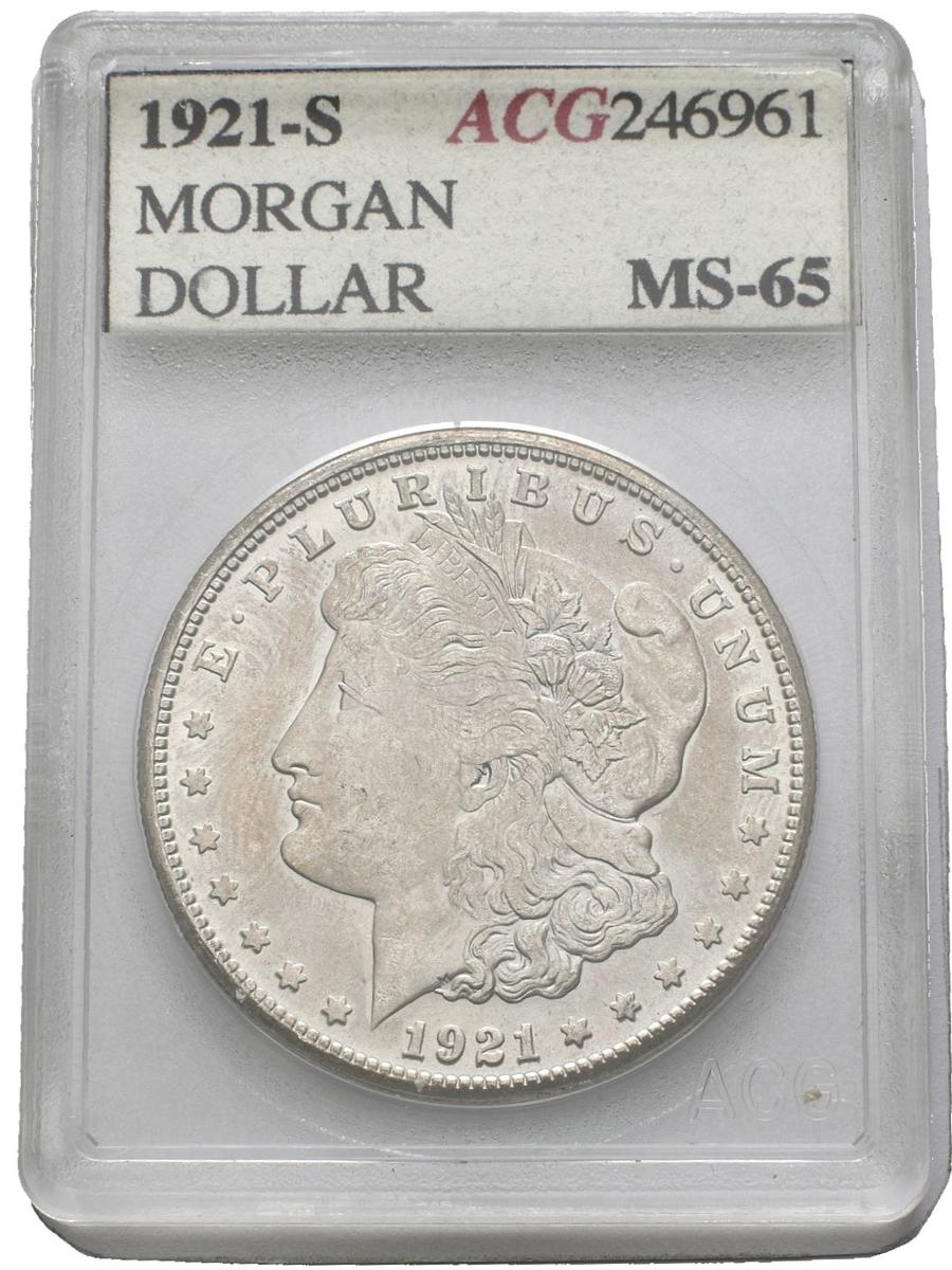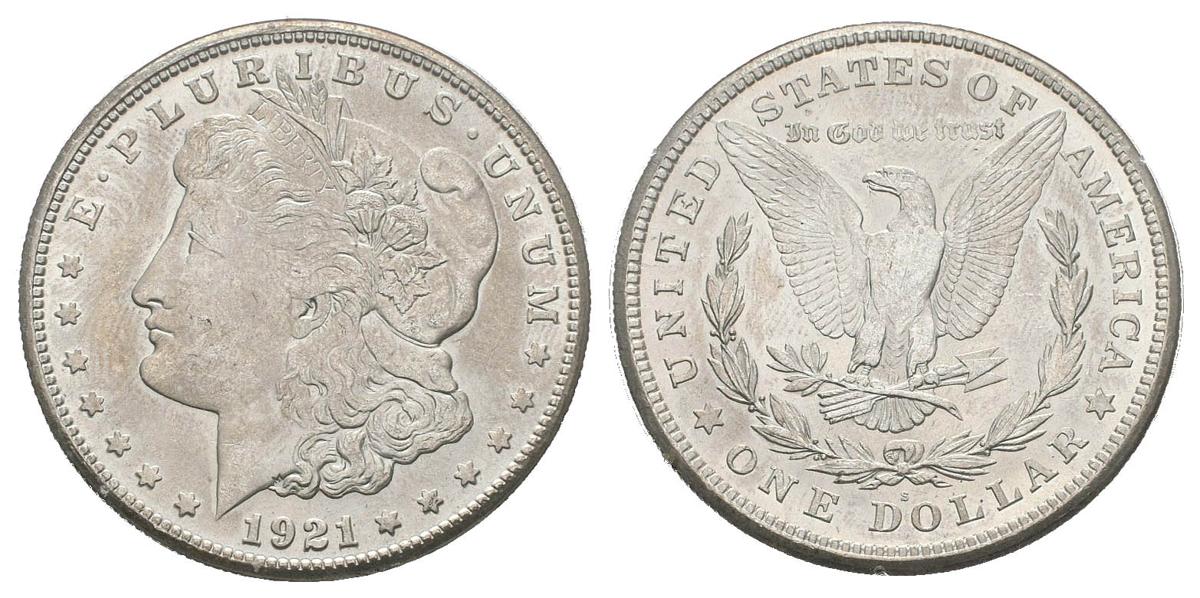ESTADOS UNIDOS. 1 Dollar (Ar. 26,73g/38mm)*. 1921. San Francisco S. (Km#110). MS 65. Encapsulado por Accugrade. *Peso y medida teórico.
