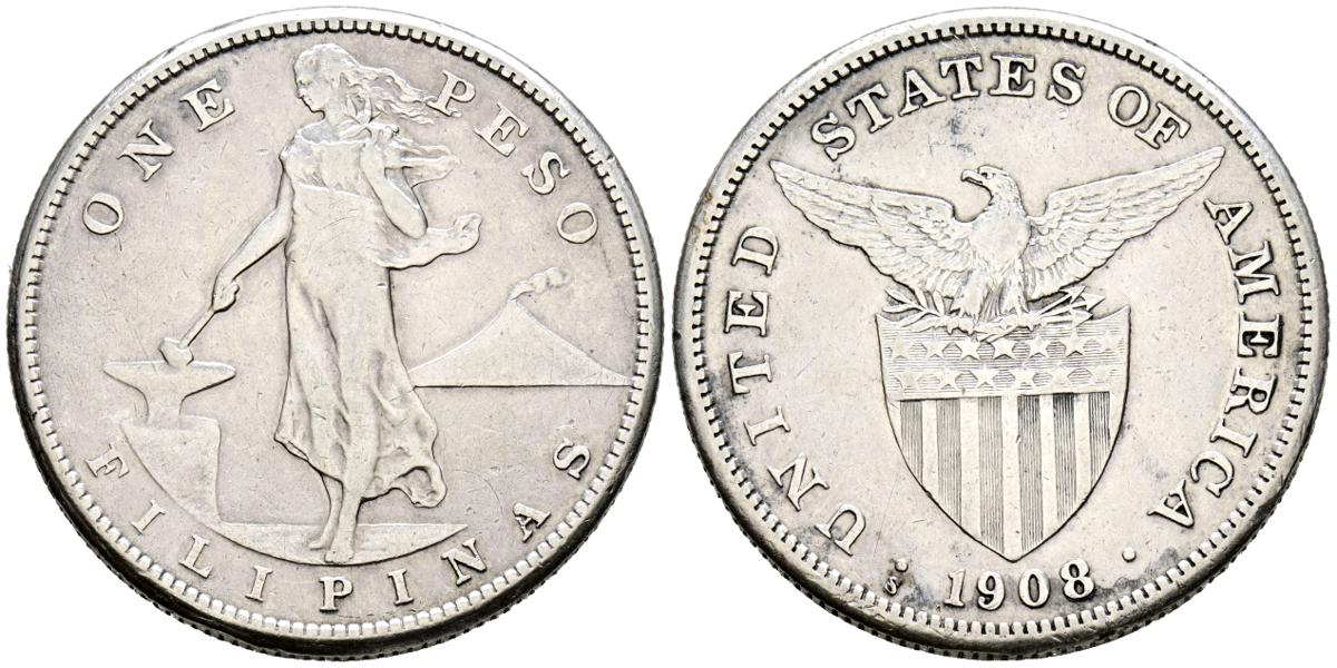 FILIPINAS (Administración Norteamericana). 1 Peso. (Ar. 19,83g/35mm). 1908. San Francisco. (Km#172). MBC.